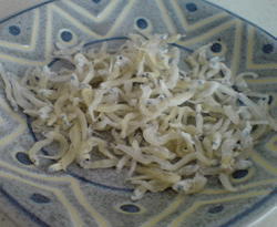 White bait are small white fish rich in calcium and iron. Good for developing healthy bones and teeth. If you can get fresh ones, use them. If not dried ones are equally good.